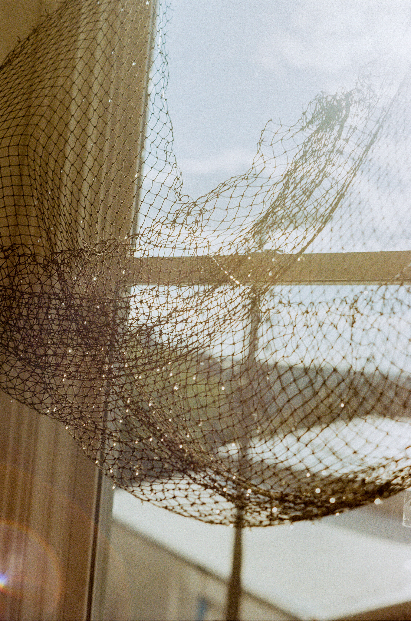 Long Skin (龙皮), variable size, fishing net, glass tears, fishing line, jump hoops, 2025 (Photo by Drew Johnson)